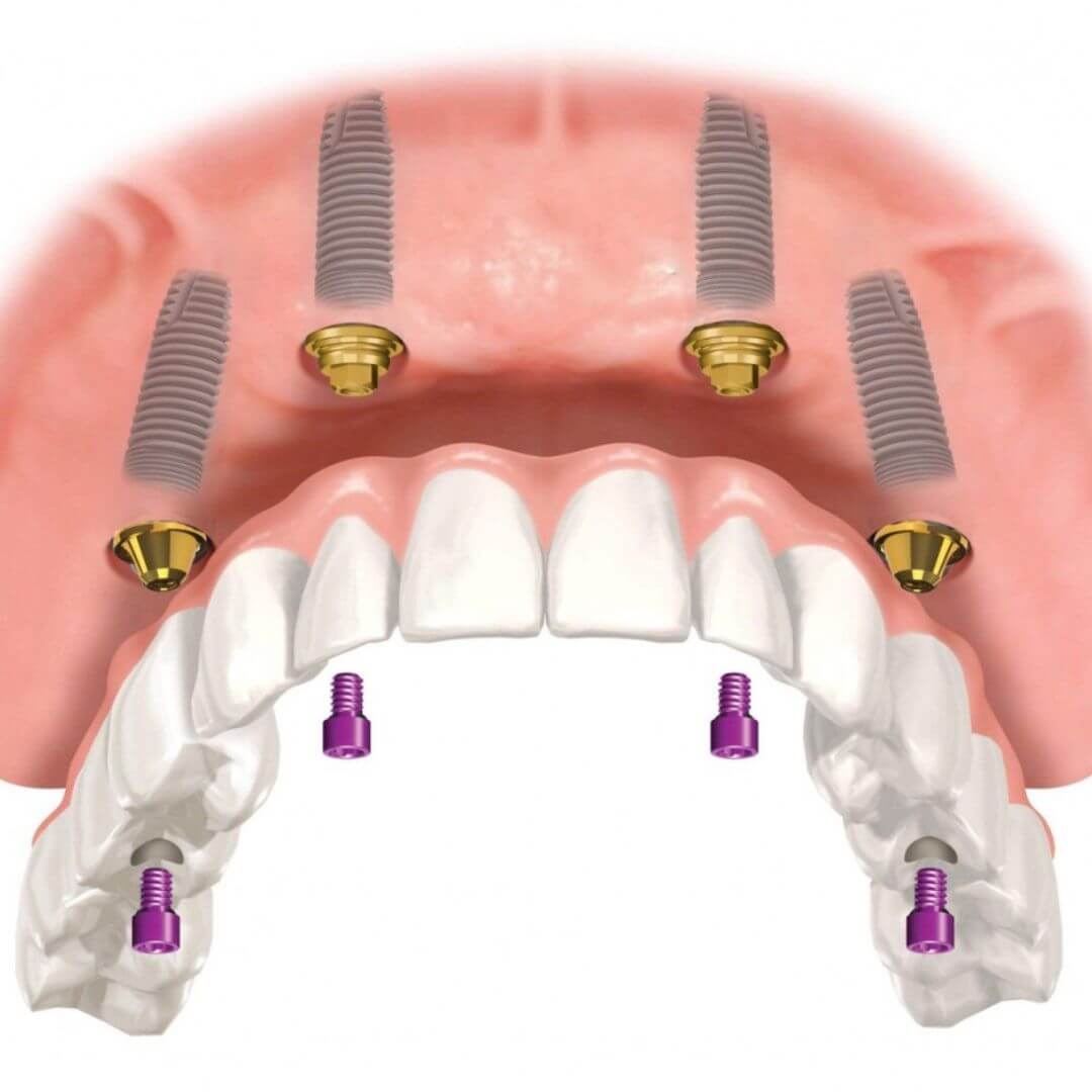 Este un sistem inovativ care permite o fixare rapidă și de lungă durată a dinților lipsă. În acest caz se folosește osul nativ al pacientului. În acest fel sunt eliminate alte intervenții adăugătoare, cum ar fi creșterea masei osoase. Acest sistem presupune doar câțiva pași: consultarea, elaborarea unui set de analize, amprentarea dentară, inserarea implanturilor provizorii, refacerea arcadelor dentare, iar la final fixarea danturii definitive. De la consultare până la obținerea unui zâmbet impecabil te despart doar 24 de ore. Clinica București